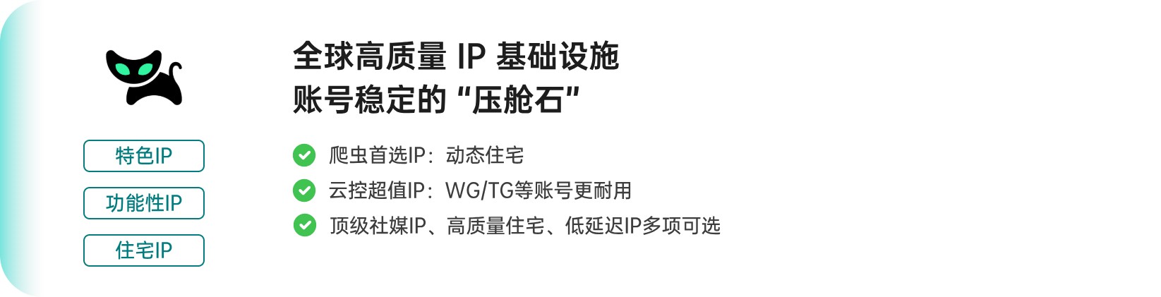 - 全球IP覆盖广:动静态、住宅、机房、行业顶级IP全支持;