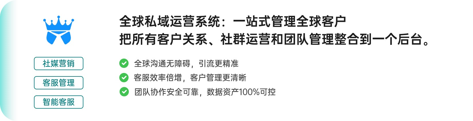 一句话总结:轻松做全球私域,把客户变成长期资产,实现 “高效沟通 + 精准转化 + 安全管理”。